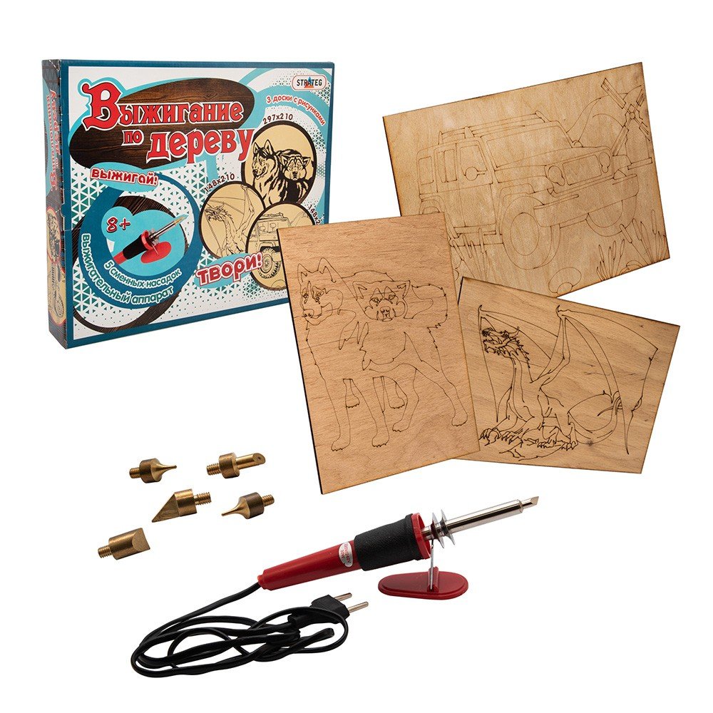 Бренд: Strateg Упаковка: Коробка Колір: Бежевий Тип ел-тів живлення: Немає Ел-ти живлення в комплекті: Ні Вага з упаковкою: 660 г Габарити в упаковці: 28 x 33 x 5.5 см Країна виробник: Україна Матеріал: Комбінований Комплектація: Вижігательний апарат, 3 дошки з малюнками