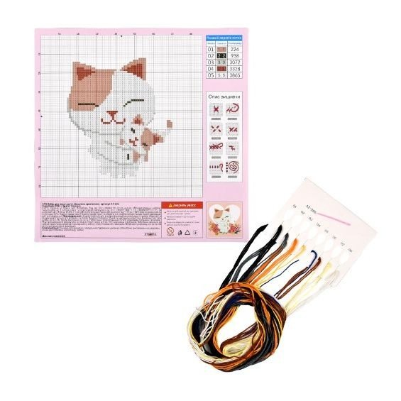Опис Набір для творчості "Вишивка хрестиком: Кішка з кошеням" 20х20 см