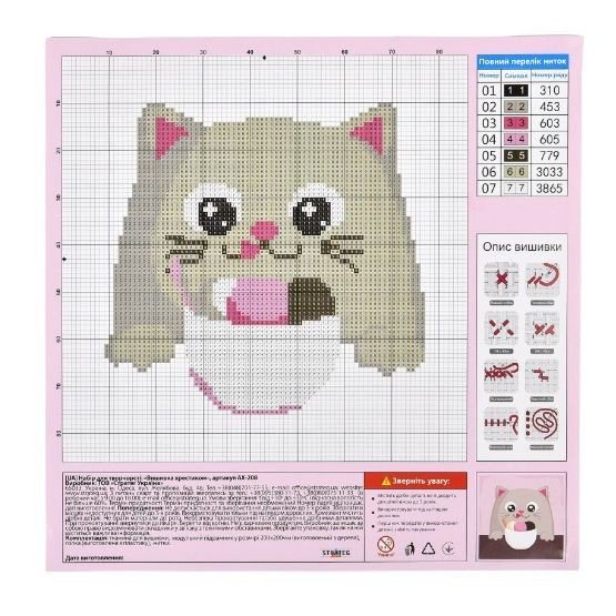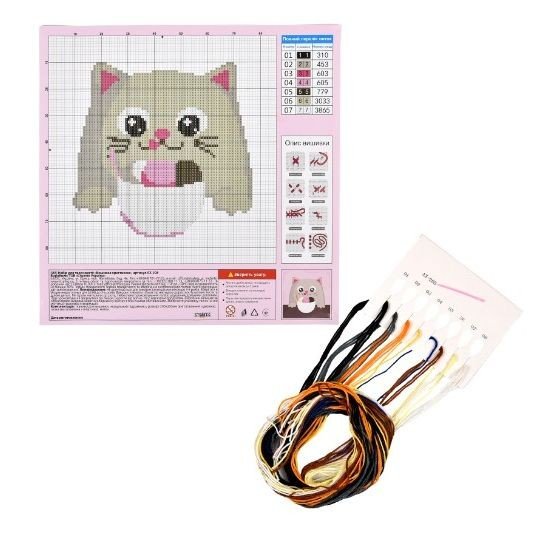 Опис Набір для творчості "Вишивка хрестиком: Ласощі для мурчика" 20х20 см