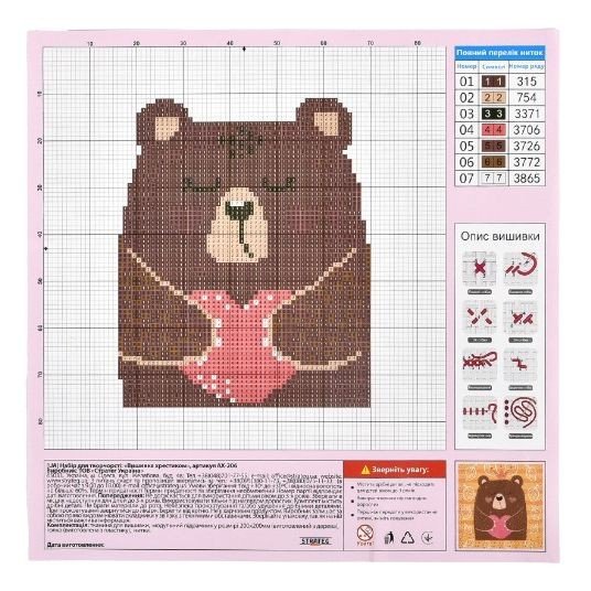 Опис Набір для творчості "Вишивка хрестиком: Ведмежатко" 20х20 см