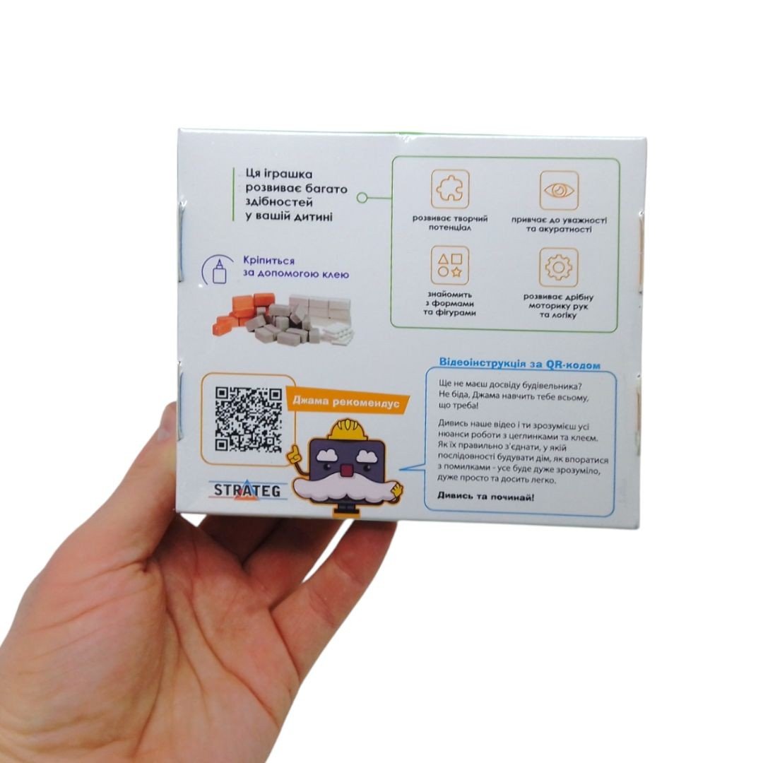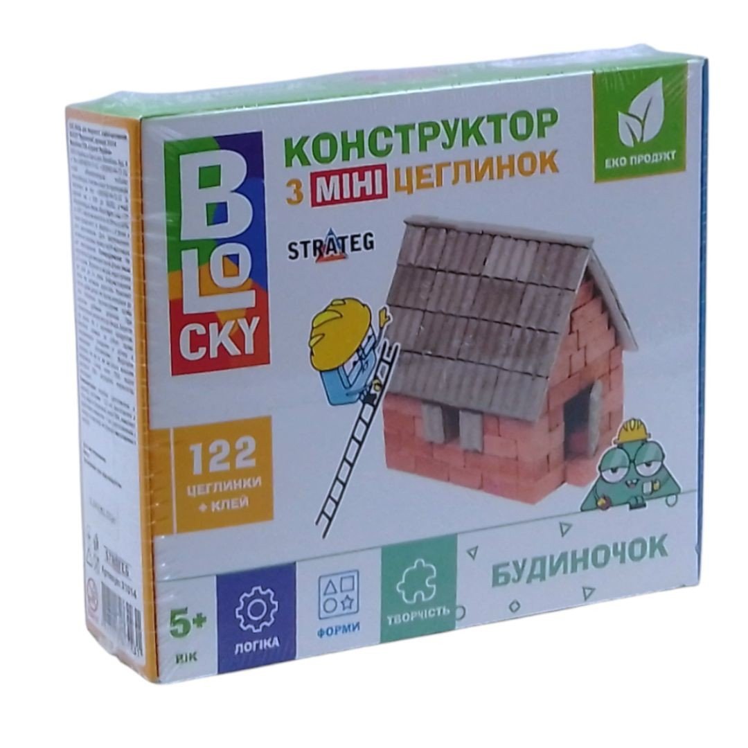 Бренд: BLOCKY Упаковка: Коробка Колір: Різнобарв'я Вага з упаковкою: 241 г Габарити в упаковці: 12 x 14.5 x 4 см Країна виробник: Україна Матеріал: Комбінований Комплектація: 122 цеглинки та клей ПВА