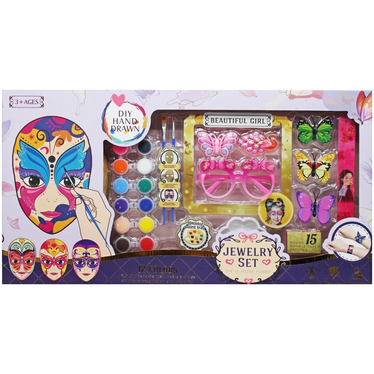 Комплектація: Маска, 12 кольорів фарби, палітра, 2 пензлики, окуляри, браслет, 2 шпильки, прикраси