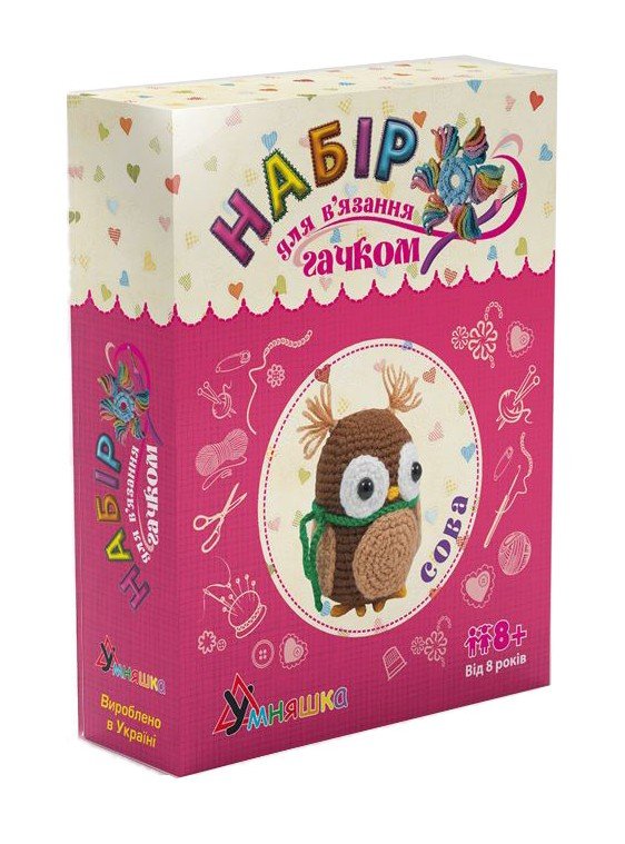 Бренд: Умняшка Упаковка: Коробка Колір: Коричневий Тип ел-тів живлення: Немає Ел-ти живлення в комплекті: Ні Вага з упаковкою: 120 г Габарити в упаковці: 22 x 17 x 5 см Країна виробник: Україна Матеріал: Текстиль Комплектація: Кольорова пряжа, гачок, інструкція