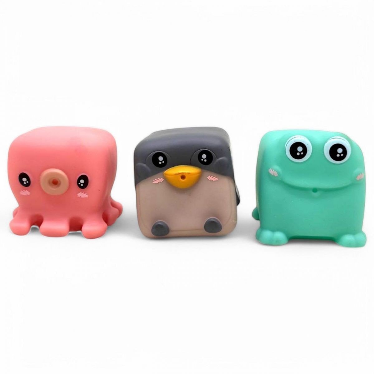 Набір гумових іграшок для купання - це весела та безпечна розвага для малюків під час водних процедур. У комплект входять 3 яскраві квадратні іграшки у вигляді тварин, які легко поміщаються у дитячі ручки. Вони виготовлені з мʼякої, приємної на дотик гуми, не містять шкідливих речовин і добре тримаються на воді. Іграшки сприяють розвитку моторики, сенсорного сприйняття та уяви. Ідеальний вибір для веселого та пізнавального купання! Розмір - 5 х 5 см.