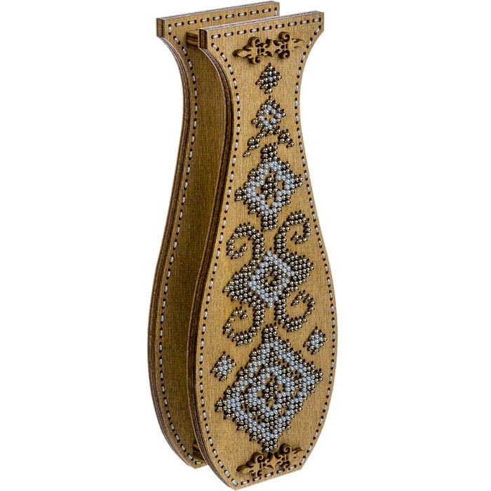 Оригінальний набір для вишивки по дереву стане чудовим подарунком. Комплект включає: фігурна перфорована заготовка з фанери, скляна колба, бісер PRECIOSA, голки і нитки для вишивки, голка і нитка для зшивання деталей, інструкція. Готовий виріб може служити як елемент декору або як новорічна іграшка на ялинку. Розмір заготівлі 18х7 см.