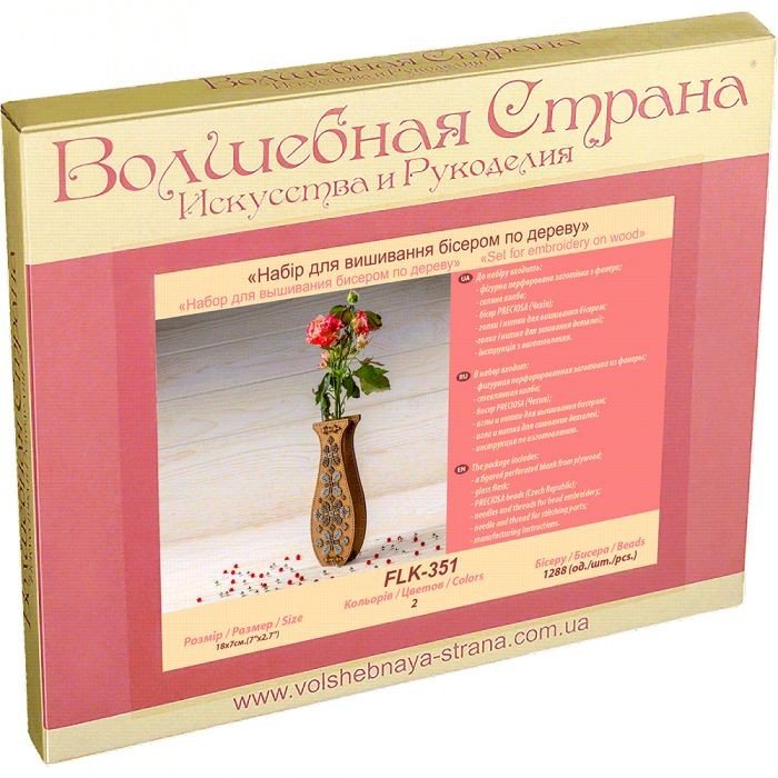 Вік: 8 років Упаковка: Коробка Колір: Різнобарв'я Вага з упаковкою: 195 г Габарити в упаковці: 2 x 16 x 21 см Країна виробник: Україна Матеріал: Комбінований Комплектація: Фігурна перфорована заготовка з фанери, скляна колба, бісер PRECIOSA, голки і нитки для вишивки, голка і нитка для зшивання деталей, інструкція