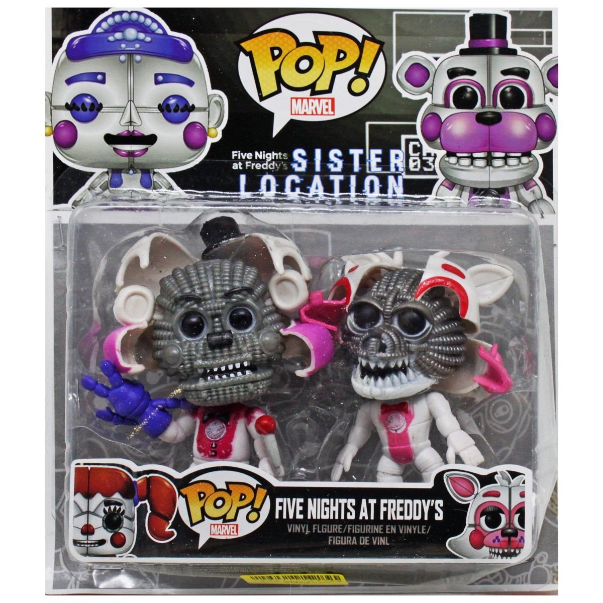 У наборі дві фігурки у вигляді аніматроніків - персонажів популярної гри "Five Nights At Freddyʼs" (Пʼять ночей із Фредді). Фігурки добре деталізовані, голова рухлива. Набір фігурок обовʼязково порадує фанатів компʼютерних хорор ігор. Висота – 11 см. Для дітей від 3-х років.