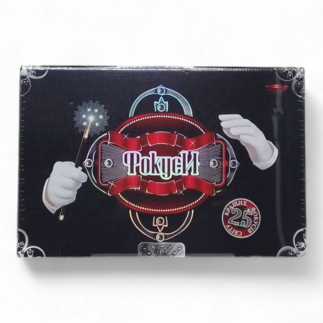 Набір "Фокуси". 25 різноманітних фокусів. Набір включає в себе детальну покрокову інструкцію, яка містить повний опис всіх можливих фокусів + диск з навчальними відеоуроками! Інвентар для демонстрації фокусів: "чудо-мотузка", "магічні кубики", "иолшебние ковпачки", "чарівні кільця", витратні матеріали, колода карт з варіантами сценічного шоу, різні зникаючі предмети, елементи для театралізації простих фокусів.