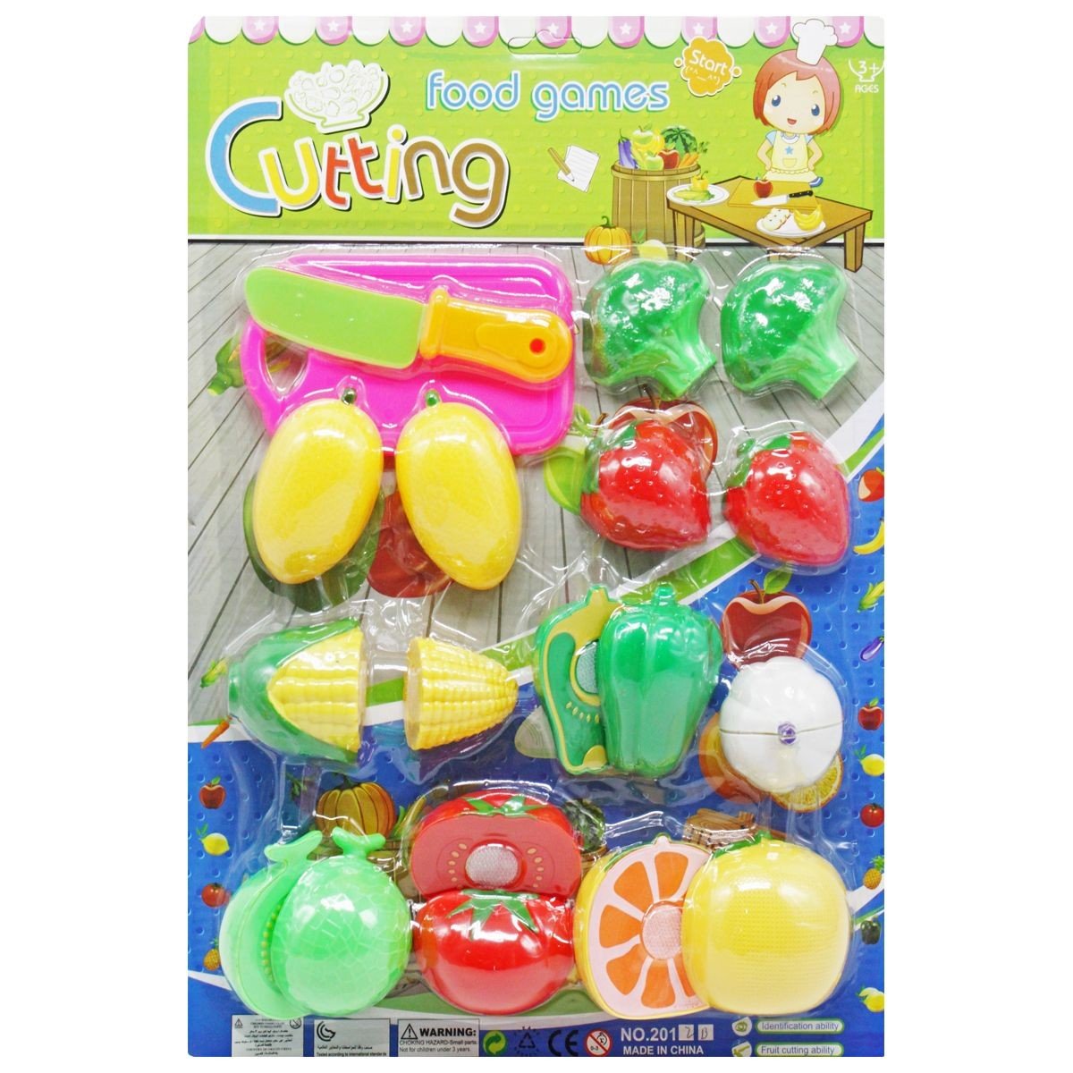 Упаковка: Планшет Колір: Різнобарвний Вага з упаковкою: 234 г Габарити в упаковці: 40 x 28 x 4 см Країна виробник: Китай Матеріал: Пластик Комплектація: овочі та фрукти (апельсин, помідор, часник, солодкий перець, кукурудза, полуниця, броколі, лимон, диня) досточка для нарізування та ніж.