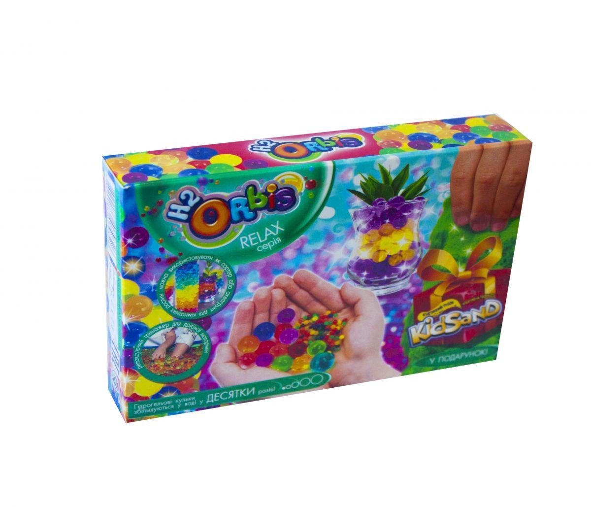 Набір креативної творчості "H2Orbis + пісок" із серії RELAX BOX. Висипати сухі гранули (кульки) в глибоку миску з водою кімнатної температури (на 3 6 годин). Якщо кульки ввібрали не всю воду - злийте зайву рідину. Готові кульки використовуйте для гри або прикраси. У наборі: кінетичний пісок (100 г), гідрогелеві кульки, інструкція.