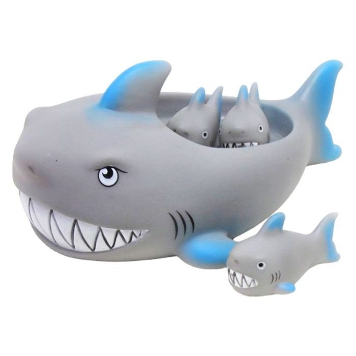Яскрава гумова акула, усередині якої сидять ще 3 маленькі акули. Іграшка підійде для гри у ванній та зробить процес купання веселим та цікавим. Завдяки тому, що іграшки всередині порожнисті, в них можна набирати воду і бризкатися. Розмір великої акули: 20х13х12см. Розмір маленьких іграшок: 7х5х3 см.
