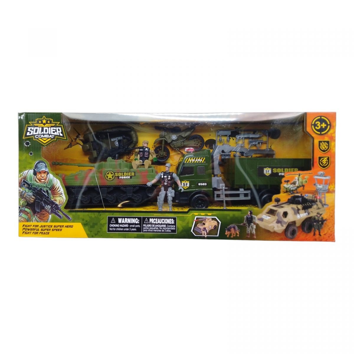 Бренд: MIC Упаковка: Коробка Колір: Різнобарв'я Вага з упаковкою: 825 г Габарити в упаковці: 57 x 22.5 x 14 см Країна виробник: Китай Матеріал: Пластик Комплектація: танк, машина, гвинтокрил, човен, 2 солдатика, додаткові аксесуари та зброя. Виконано з якісного міцного пластику