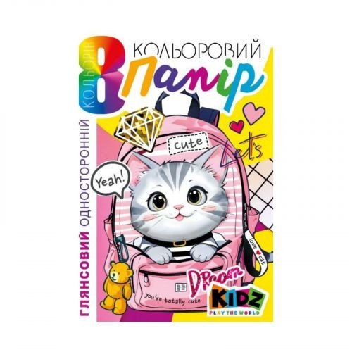 Опис Набір кольорового паперу односторонній , глянцевий 210х297 мм, 8 аркушів.