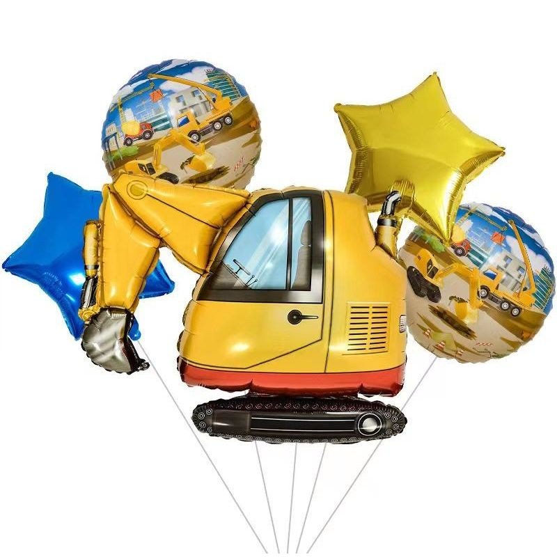 Яскравий набір кульок "Екскаватор 2". Милий та барвистий комплект. У наборі 5 фольгованих кульок: 1 велика кулька у вигляді екскаватора, 2 у вигляді зірок та 2 з малюнками. Всі кульки якісні та надійні.