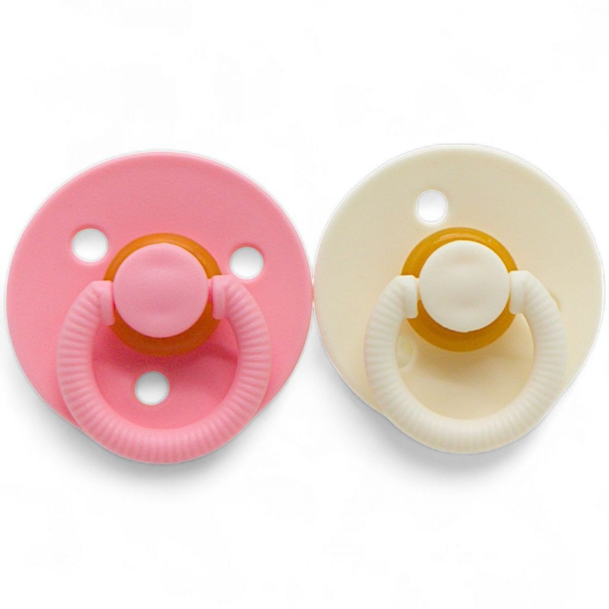 Латексна пустушка круглої форми. 2 штуки в наборі. Рекомендований вік використання: 6+ місяців. Виробник рекомендує змінювати пустушку на нову кожні 4-6 тижнів. На виробі є щиток з отворами для попередження подразнення шкіри навколо ротика. Також, присутнє зручне кілечко для кріплення тримача.