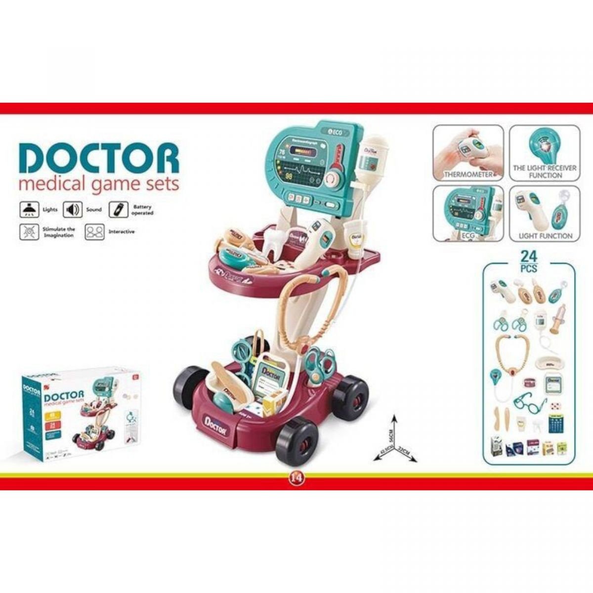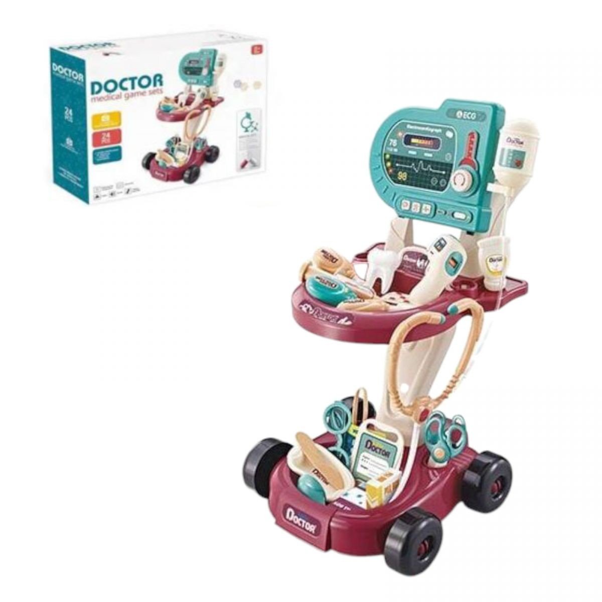 Опис Набір лікаря 24 предмети, "Апарат реанімації", світло, звук, у коробці