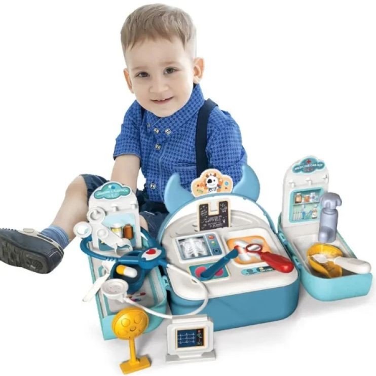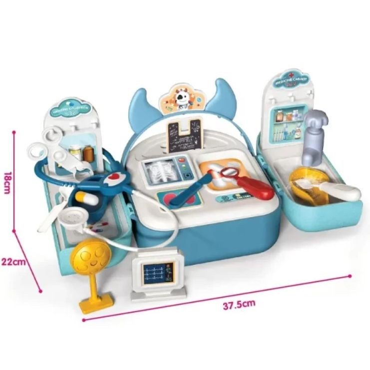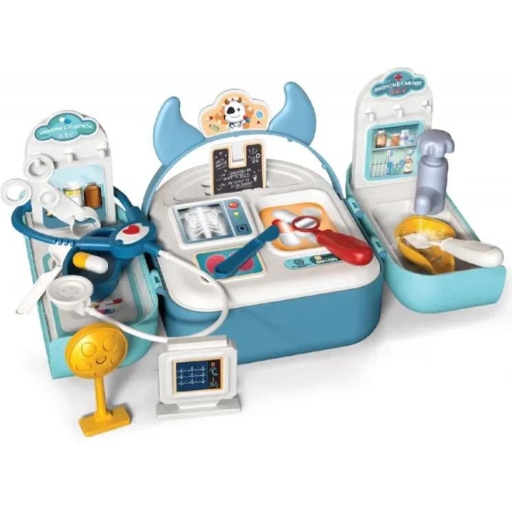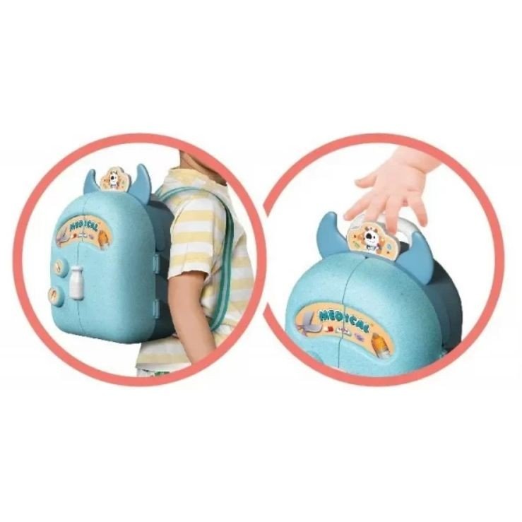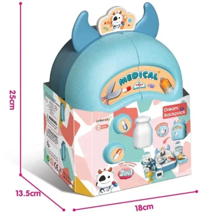 Набір лікаря "Корівка", 2 в 1 - це захопливий і функціональний набір для маленьких любителів грати в лікаря. Спочатку він виглядає як милий рюкзачок із зображенням корівки, але за лічені секунди трансформується у справжній медичний кабінет. В комплект входять всі необхідні інструменти для надання допомоги: рентген, медичні інструменти та раковина для миття рук. Цей набір ідеально підходить для розвитку уяви та знайомства з професією лікаря.