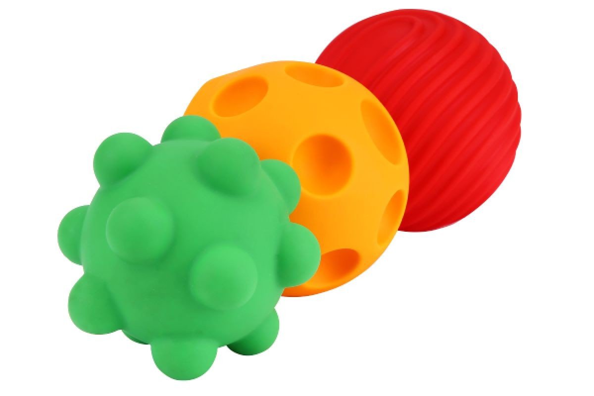 Набір тактильні іграшки для дітей. М'ячки розвивають дрібну моторику та тактильні відчуття за допомогою рельєфних елементів. М'ячки виконані з абсолютно безпечної та щільної гуми. Діаметр м'ячика 6 см, у наборі 3 штуки. Для дітей від року.