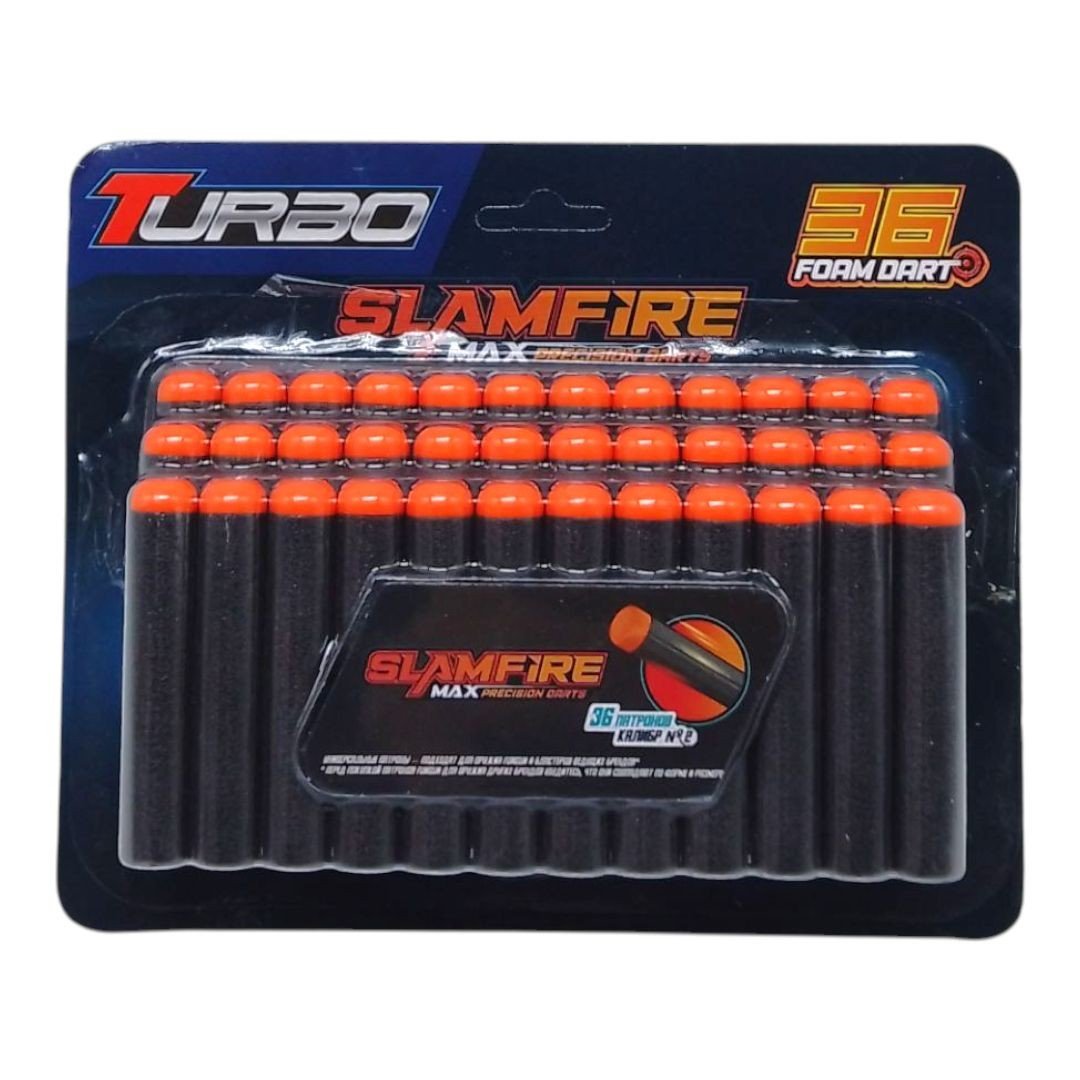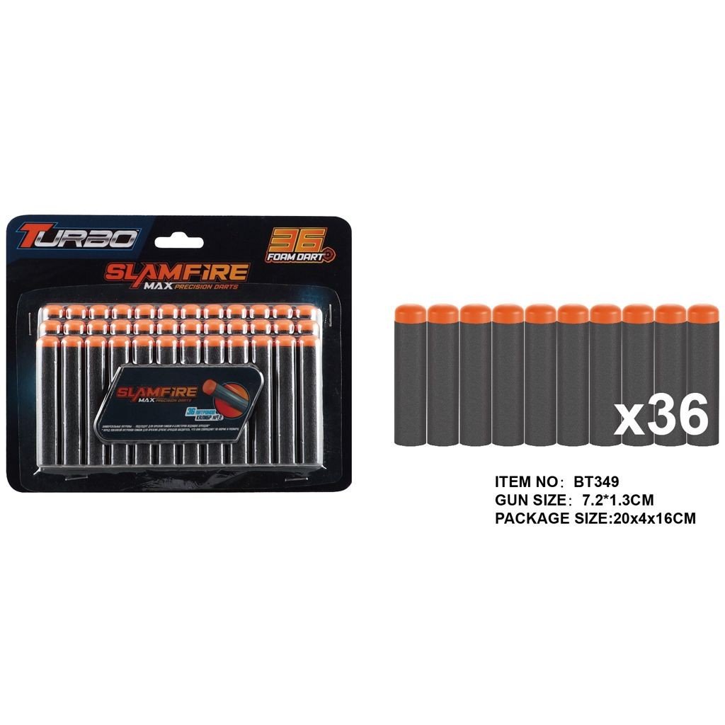 Набір мʼяких набоїв - 36 штук, розміром 7,2 х 1,3 см. Виготовлені з мʼякого спіненого матеріалу, оснащені гумовим наконечником для безпечної гри. Підходять для більшості іграшкових бластерів. Відмінний вибір для активних ігор як удома, так і на вулиці.