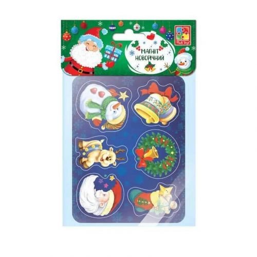 Набір сувенірно-декоративних магнітів у новорічній тематиці. На аркуші 6 яскравих магнітів, якими можна прикрасити холодильник чи магнітну дошку. Будуть чудовим доповненням новорічного декору. Розмір листа: 15х12 см. Різні види в асортименті.
