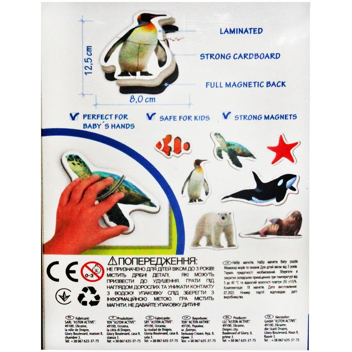 Набір магнітів "Океан та море" буде добрим подарунком для дитини. Набір має 18 магнітиків. З них можна скласти зображення 7 морських мешканців. Магніти зверху ламіновані, під низом якісний картон та сам магніт. Допоможе розвивати логічне мислення.