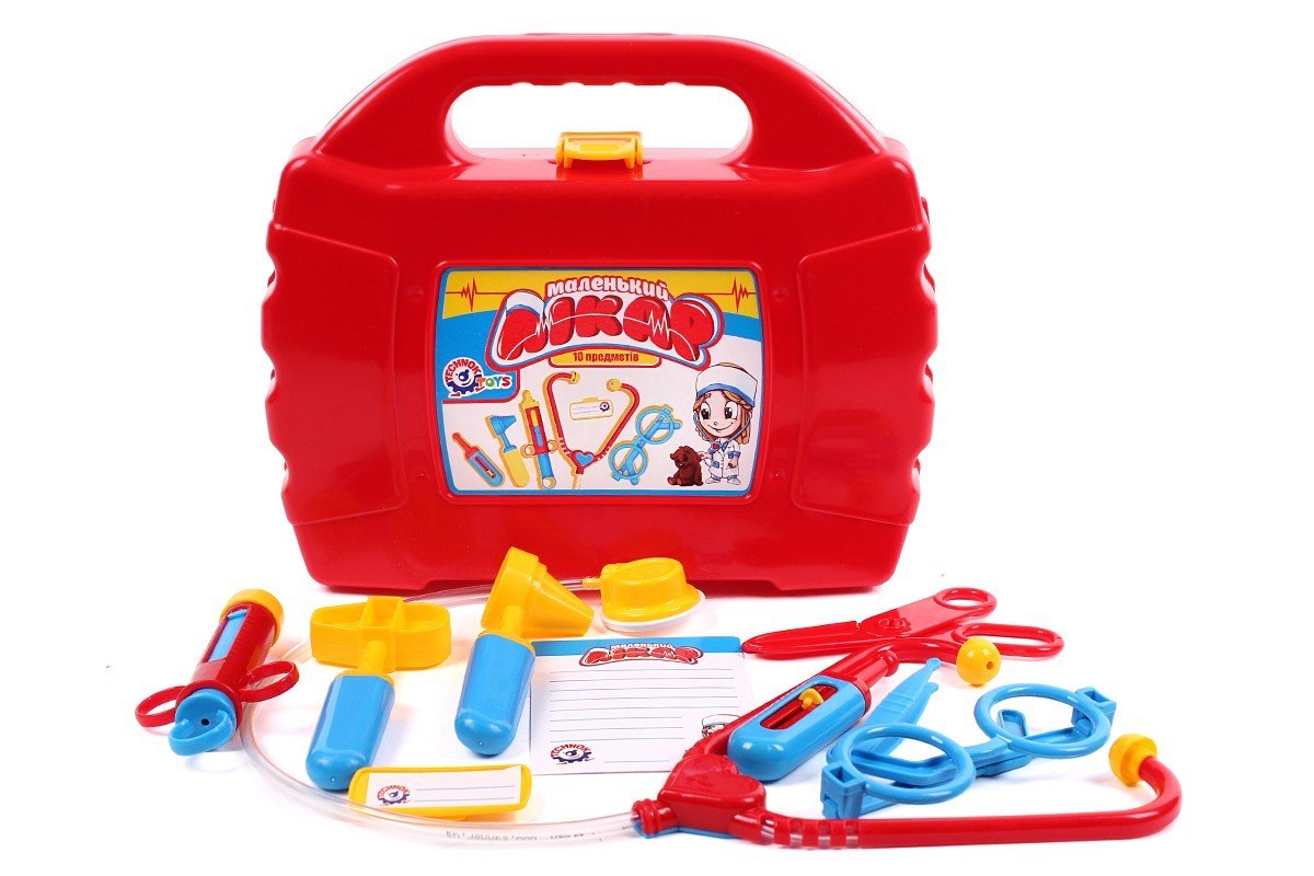 У комплекті - 10 найбільш популярних інструментів серед яких: шприц, термометр, фонендоскоп і інші. 27 х 22.5 х 8.5 см
