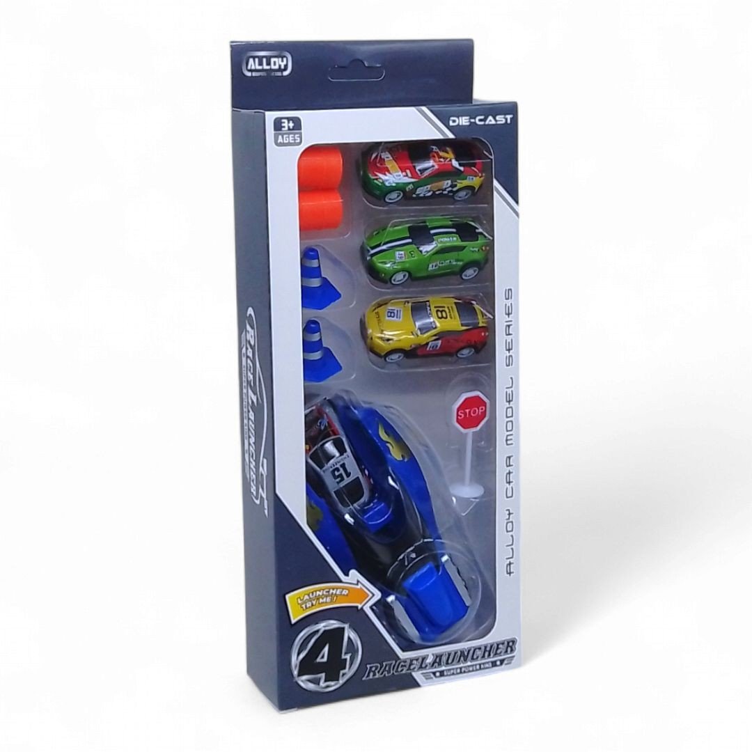 Набір із 4-х машинок з унікальним запуском! Всього одним натисканням кнопки машинка мчить уперед. У комплекті 2 дорожні конуси, знак і 2 бочки для створення захоплюючих дорожніх перешкод. Відмінний вибір для ігор та розвитку уяви! Розмір машинки – 6,5 см.