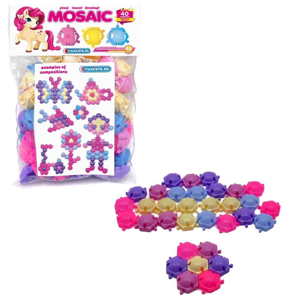 Яскрава мозаїка пазл складається з 40 яскравих пластикових детальок 5-ти кольорів, які можна з'єднувати між собою. Розмір однієї детальки: 4 х 2,5 см. Гра з мозаїкою розвиває мислення, уяву та дрібну моторику. За допомогою деталей можна створювати будь-яку фігуру або навіть малюнок. Підходить для дітей від 3-х років.