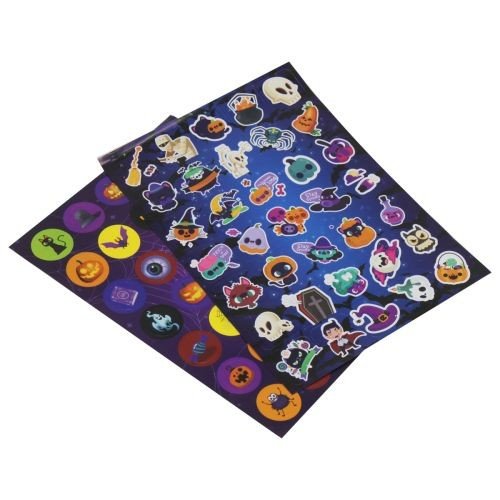 Набір складається з 2-х аркушів формату А5 з різноманітними яскравими наклейками, виконаними у стилі Хеллоуїна. Наклейки легко наклеюються на будь-які плоскі поверхні. 2 види наклейок в асортименті.