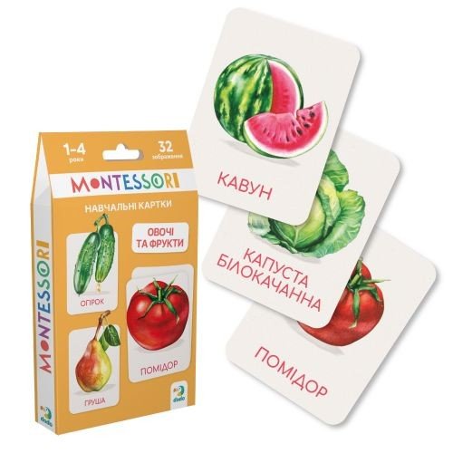 Опис Набір навчальних карток Монтесорі «Овочі та фрукти»
