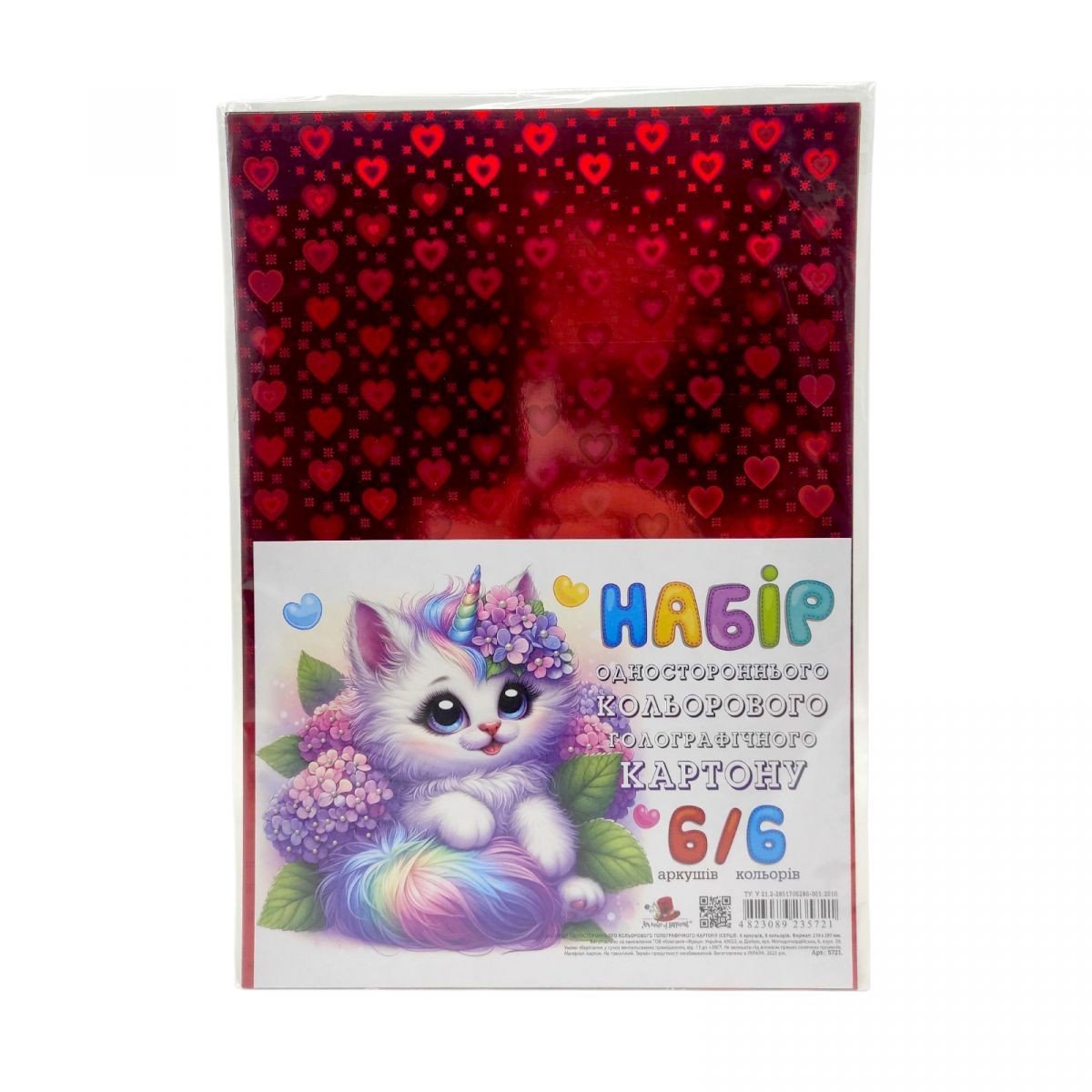 Опис Набір одностороннього кольорового голографічного картону (21х29,7см),6 аркушів,6 кольорів