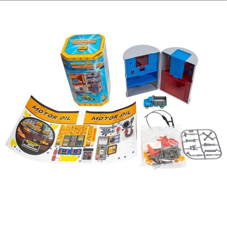 Інноваційний компактний набір-паркінг є унікальним пристроєм у формі циліндра, спроектований для максимальної економії простору. З легкістю трансформується в станцію техобслуговування. Набір складається з кількох секцій. Має рухливі елементи. Комплект поставляється з металевою машинкою, яка легко паркується та проходить технічне обслуговування. У наборі також передбачено безліч додаткових аксесуарів, включаючи знаки та інші елементи для створення реалістичної атмосфери гаража. Розмір – 21 х 14 х 5 см.