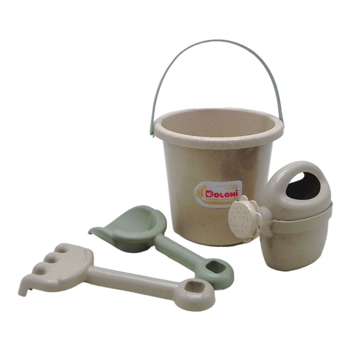 ТМ Doloi Toys розпочала виробництво нової лінії дитячих іграшок-ECO, на основі безпечної та екологічно чистої сировини – пшеничної соломи. Виробництво на основі ЕКО сировини не тільки використовує більш природний та відновлюваний ресурс, але й зменшує вуглецевий слід. У даному пісочному наборі є різноманітні елементи: відерце, лієчка, лопатка та грабельки. Набір допоможе дитині весело провести час на свіжому повітрі. Виготовлено з поліпропілену високої якості з покращеною міцністю та температурними характеристиками.