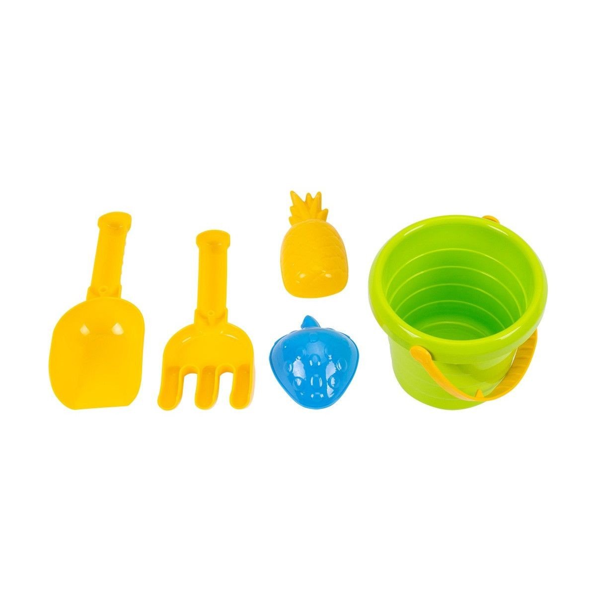 Комплектація: лопатка, грабельки, відерце та 2 пасочки для піску