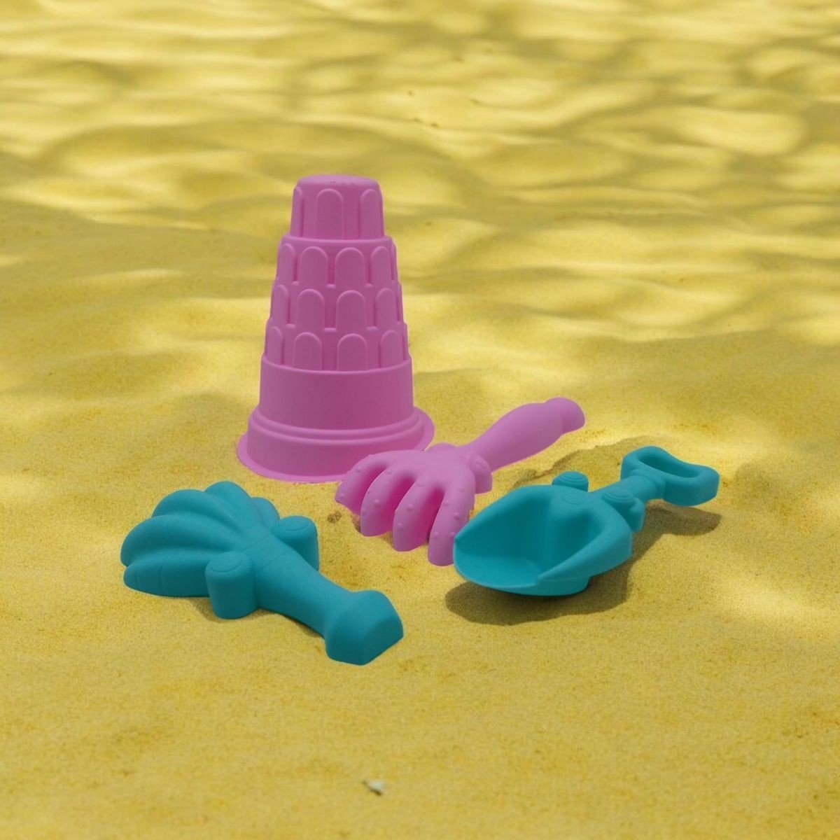 Пісочний набір — ідеальний комплект для ігор на пляжі або в пісочниці. У набір входить форма-вежа, яку можна використовувати і як відерце, дві лопатки (класична і у вигляді мушлі) і граблі. Яскраві кольори, міцний пластик і багатофункціональність елементів зроблять кожну гру захоплюючою та розвиваючою!