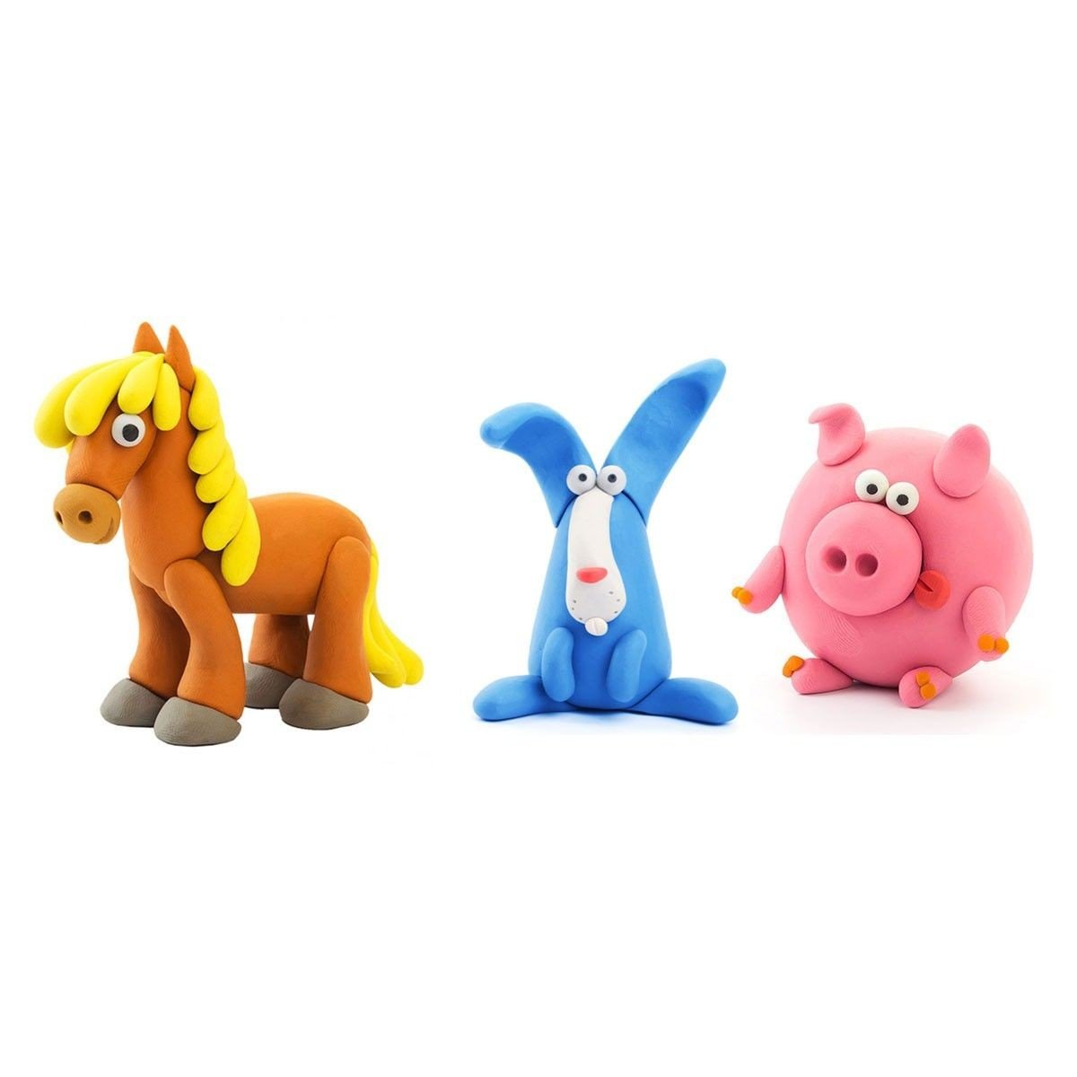 Набір пластиліну, що самостійно твердіє, ЛІПАКА – ПОРОСЯТКО, КОНЯЧКА, КРОЛИК – розважить і малюків і дорослих. За допомогою анімаційних інструкцій в додатку HEY CLAY, Ви зможете зліпити трьох кумедних тваринок. Пластилін твердіє на повітрі протягом 24 годин, після чого можна гратися створеними фігурками.