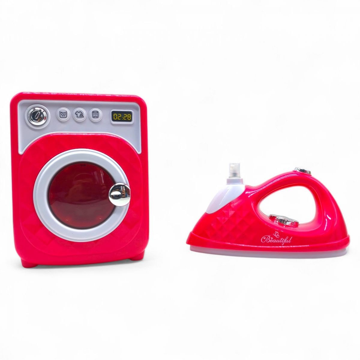 Опис Набір побутової техніки, пральна машина з праскою (звукові, світові ефекти, пар, на батарейках)