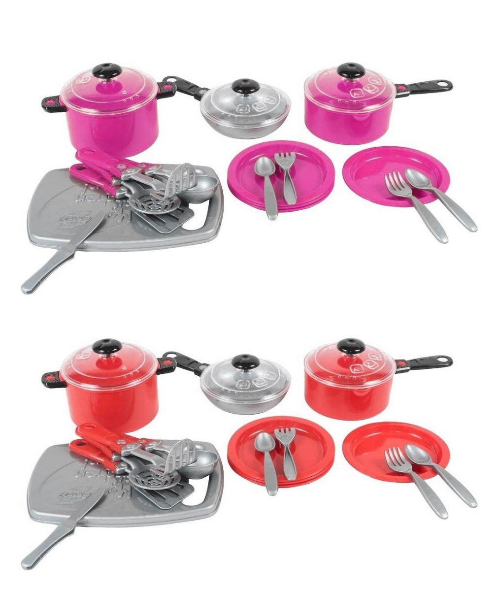 Бренд: Orion Упаковка: Пакет Колір: Рожевий, червоний Вага з упаковкою: 280 г Габарити в упаковці: 21 x 9 x 23 см Габарити без упаковки: 21 x 9 x 23 см Країна виробник: Україна Матеріал: Пластик Комплектація: 4 тарілочки, 3 лопатки, ложечки і вилочки (по 4 штуки), ополоник, 2 каструлі, піднос