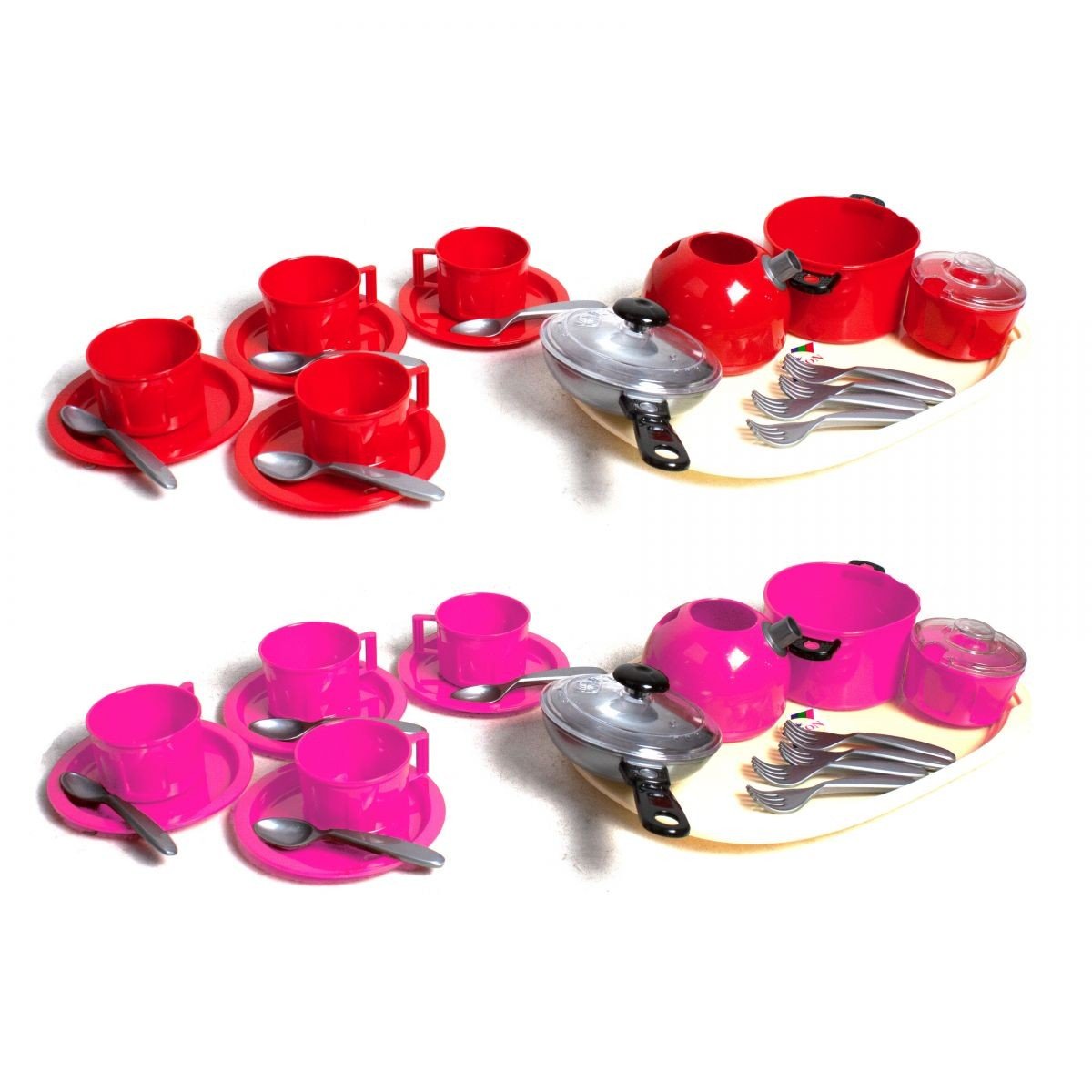 Бренд: Orion Упаковка: Сітка Колір: Червоний, малиновий Вага з упаковкою: 348 г Габарити в упаковці: 22 x 31.5 x 7 см Габарити без упаковки: 22 x 31.5 x 7 см Країна виробник: Україна Матеріал: Пластик Комплектація: Піднос, каструлька з кришкою, цукорниця з кришкою, сковорідка, 4 тарілки, чайник, 4 чашки, 4 вилки, 4 ложки