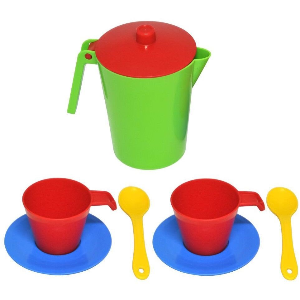 Бренд: TIGRES Упаковка: Сітка Колір: Різнобарв'я Вага з упаковкою: 110 г Габарити в упаковці: 12 x 12.5 x 9 см Країна виробник: Україна Матеріал: Пластик Комплектація: 7 предметів: 1 чайник, 2 чашки, 2 блюдця та 2 ложечки