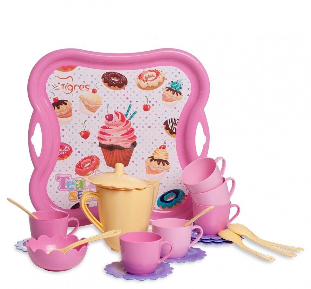 Бренд: TIGRES Упаковка: Сітка Колір: Рожевий Вага з упаковкою: 645 г Габарити в упаковці: 29 x 8 x 29 см Габарити без упаковки: 29 x 8 x 29 см Країна виробник: Україна Матеріал: Пластик Комплектація: Піднос, чашечки (6 шт.), Блюдця (6 шт.), Чайні ложечки (6 шт.), Цукорниця з кришечкою, графин