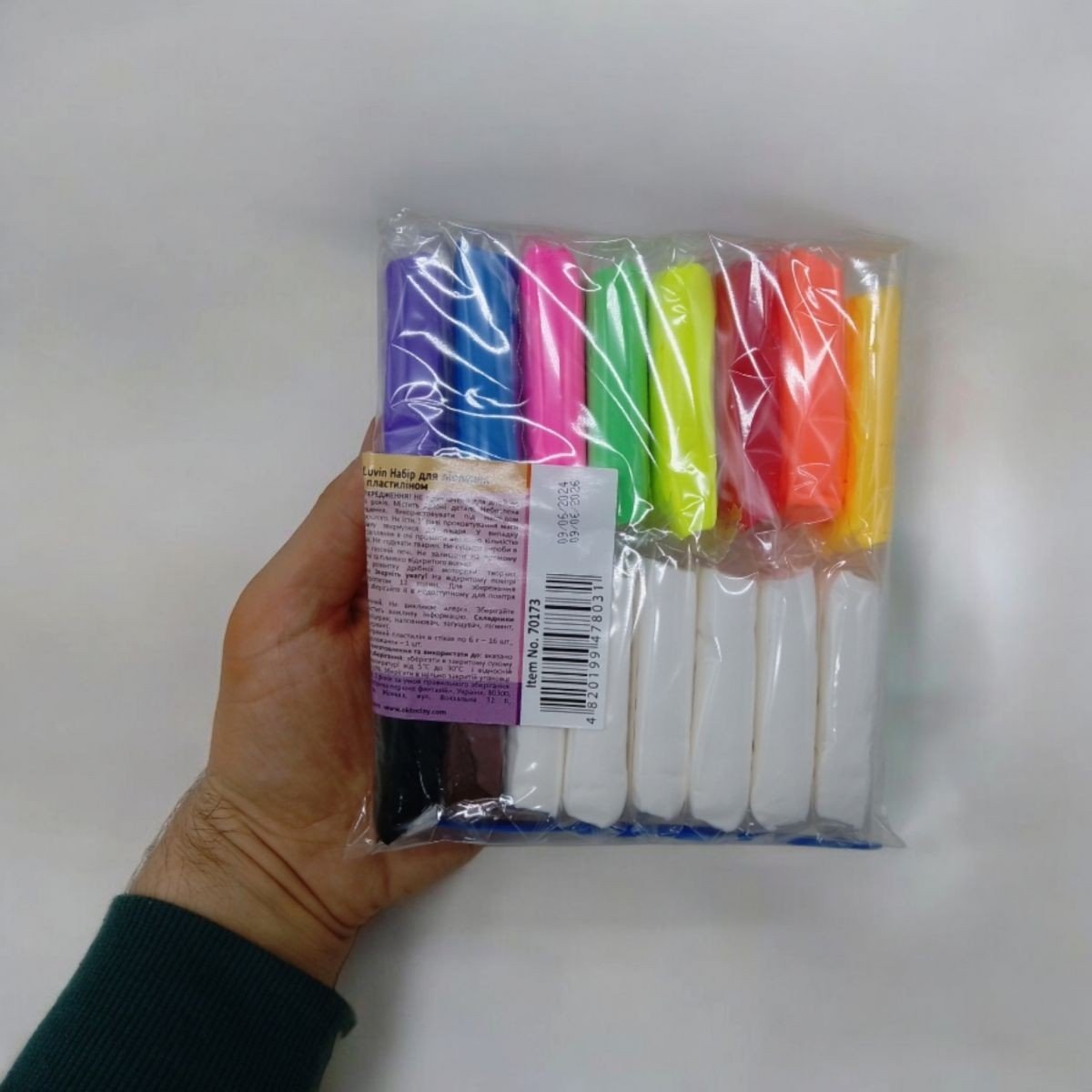 Бренд: Окто Упаковка: Пакет Колір: Різнобарв'я Вага з упаковкою: 135 г Габарити в упаковці: 3 x 16 x 15 см Габарити без упаковки: 1 x 6.5 x 3 см Країна виробник: Україна Матеріал: Комбінований Комплектація: 16 стіків пластиліну (6 г в кожному)