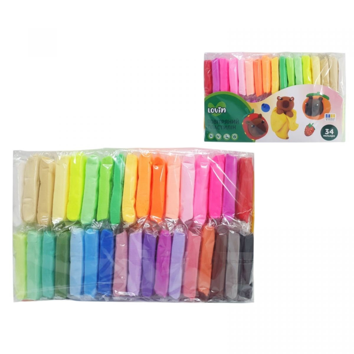 Бренд: Окто Упаковка: Пакет Колір: Різнобарв'я Вага з упаковкою: 225 г Габарити в упаковці: 3 x 27 x 15 см Габарити без упаковки: 1 x 3 x 7 см Країна виробник: Украина Матеріал: Комбінований Комплектація: 34 брикети пластиліну