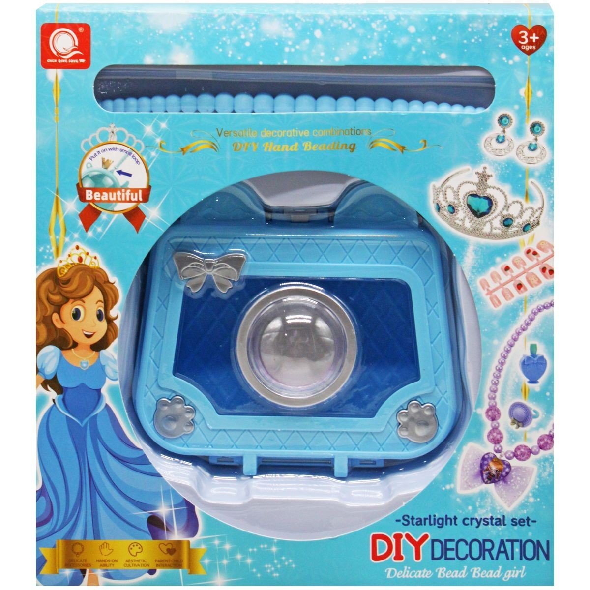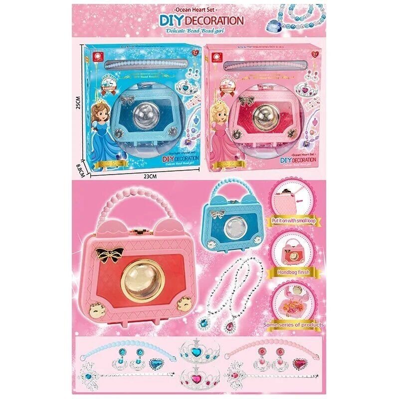 Набір прикрас із сумочкою буде чудовим подарунком маленьким модницям. У комплекті є корона, чарівна паличка, пара сережок на кліпсах, перстень та кулон. Всі аксесуари оздоблені блискучими кристалами. Також у наборі є невелика пластикова сумочка та ручка, яку до неї можна прикріпити. Розмір сумочки: 15х13х7 див.