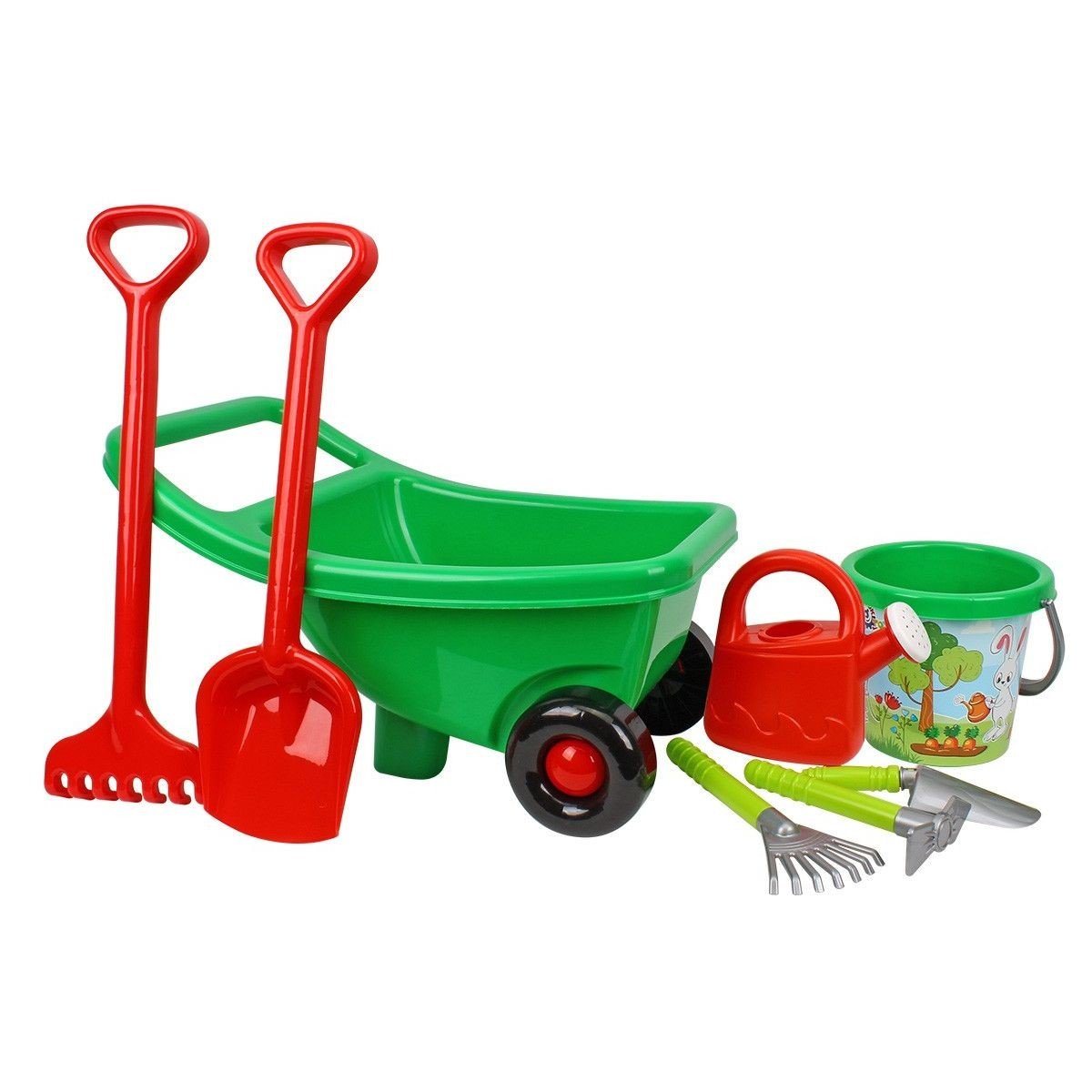 Опис Набір садівника: тачка, лопатка, граблі, відро, лійка, совок, сапка та грабельки