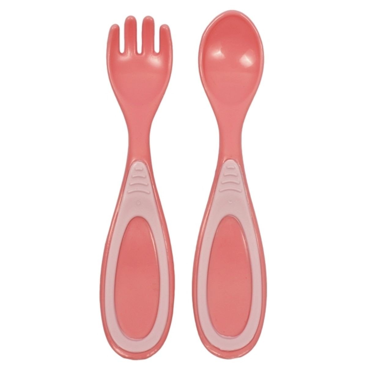 Набір приладів для годування (ложечка + вилочка). Прилади не токсичні, не б'ються, зручні у використанні. Ручка виготовлена таким чином, щоб її було зручно тримати в руці. Довжина приладу: 13 см. Для дітей від 4-х місяців.