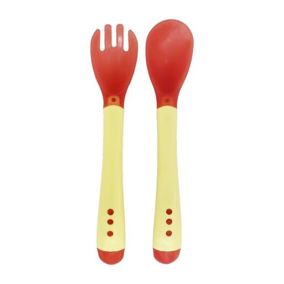 Набір дитячих столових приборів хамелеонів, які змінюють колір під впливом температури їжі. Довжина 1 приладу - 14 см. Виконано з якісних та безпечних матеріалів.