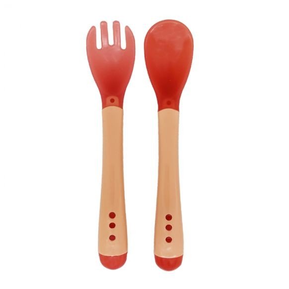 Набір дитячих столових приборів хамелеонів, які змінюють колір під впливом температури їжі. Довжина 1 приладу - 14 см. Виконано з якісних та безпечних матеріалів.