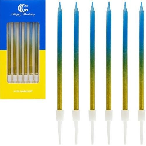 Опис Набір свічок для торта 6шт, жовто-блакитний