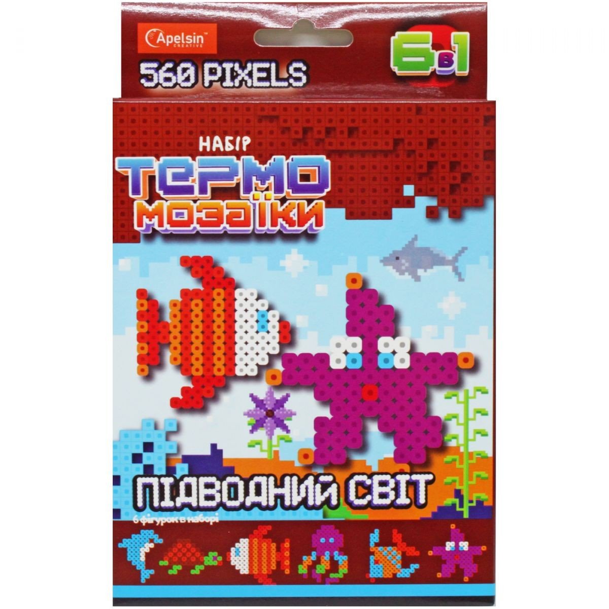 Набір для творчості "Термомозаїка", з яким дитина зможе зібрати цілих 6 фігурок та зробити з них магніти. Термомозаїка - це мозаїка з пластмасових різнокольорових намистин циліндричної форми. Ці намистини одягаються на основу – спеціальні планшети з короткими штирьками, а потім прогладжуються праскою через термопапір (кальку). При високій температурі верхній шар пластику плавиться, і намистини скріплюються між собою. У наборі є магніти, за допомогою яких готові вироби можна повісити на холодильник.